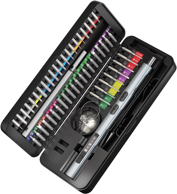 - Fester Halt im Bit-Halter und sicheres Erfassen von Schrauben: Die im Case eingelassenen Magnetfächer magnetisieren und entmagnetisieren die Bits bei Bedarf