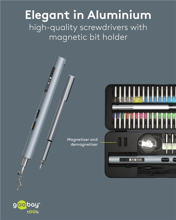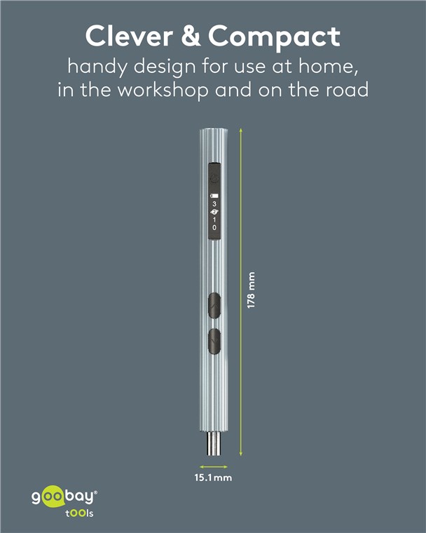- Durchdachtes Design aus edlem Aluminium: Der schlanke, elektrische Schraubenzieher liegt gut in der Hand und sorgt für das nötige Feingefühl bei der Arbeit an Smartphone, Laptop, PC, Drohne etc.