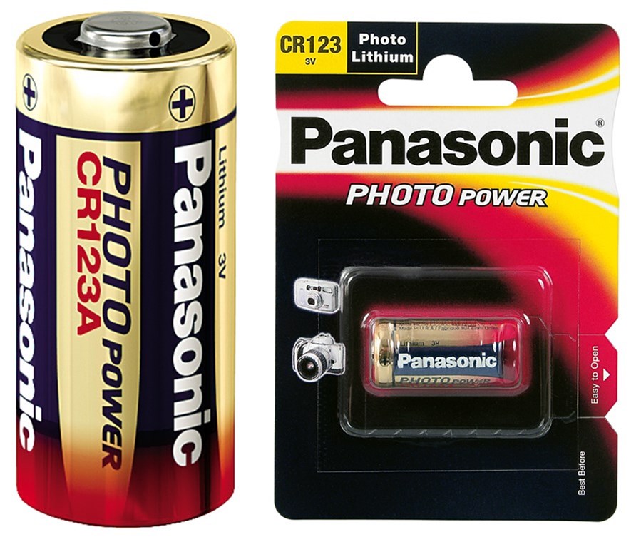 • Panasonic CR123A-Batterien bieten eine konstante Leistung und sind der zuverlässige Energielieferant für alle Anwendungen in Heim und Haushalt