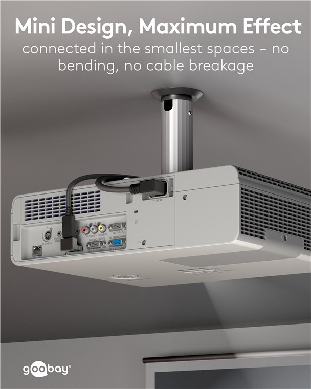 - Der 90°-Winkel des Steckers erlaubt einen abgewinkelten Anschluss: Perfekt auf kleinstem Raum, z. B. an rückwärtigen Gerätebuchsen