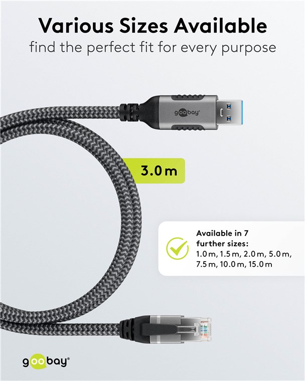 - Das LAN-Kabel ermöglicht eine stabile, kabelgebundene Internetverbindung an USB-A-Geräten ohne separaten Netzwerkkabel-Anschluss