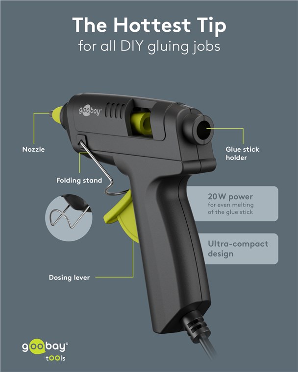 Das Must-have für Kreative und Heimwerker: Die Klebepistole ist der praktische Assistent bei vielen Deko- und DIY-Projekten. Von Verzierungen über Collagenbasteln bis hin zur Keramikreparatur, die Pistole ist der schnelle Helfer bei allen Reparaturarbeiten im Haushalt. Einschalten, aufheizen, loslegen.