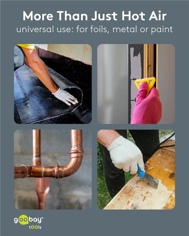 - Vielseitiger Heißluftföhn, z. B. für das Anbringen von Schrumpfschläuchen, Abtauen von Frost an Metallgegenständen, das Verformen von Baumaterial aus Plastik oder Metall