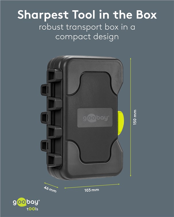 - Zur einfachen Orientierung sind die einzelnen Bohrer und die Steckplätze in der Box mit dem jeweiligen Durchmesser gekennzeichnet