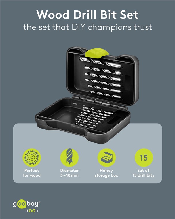 - 15x scharfe Bohrer für Durchgangs- und Sacklochbohrungen in Weich- und Hartholz, perfekt für die Möbelmontage oder für Schrauben- und Dübellöcher