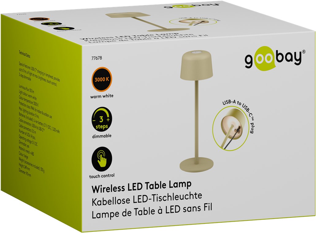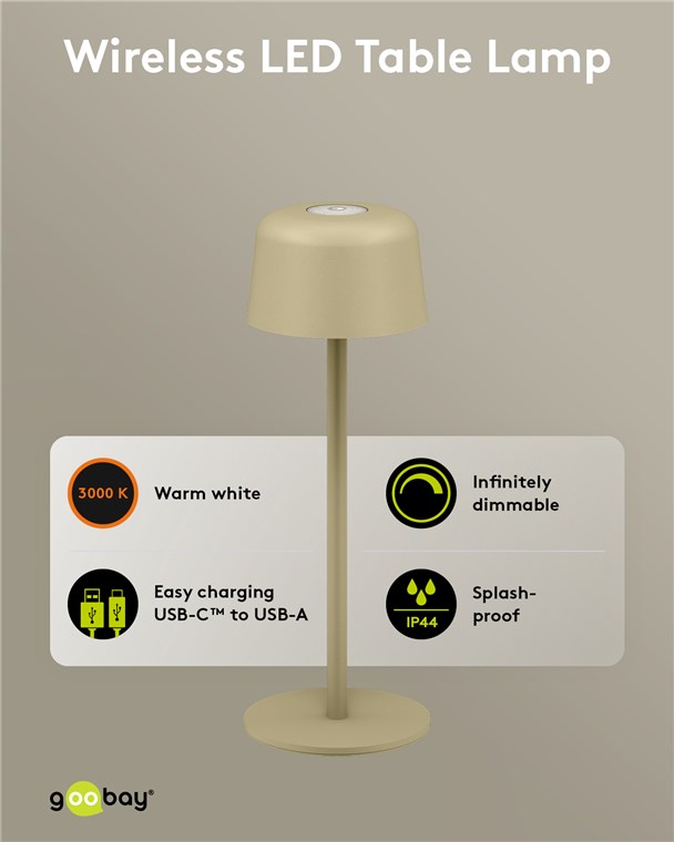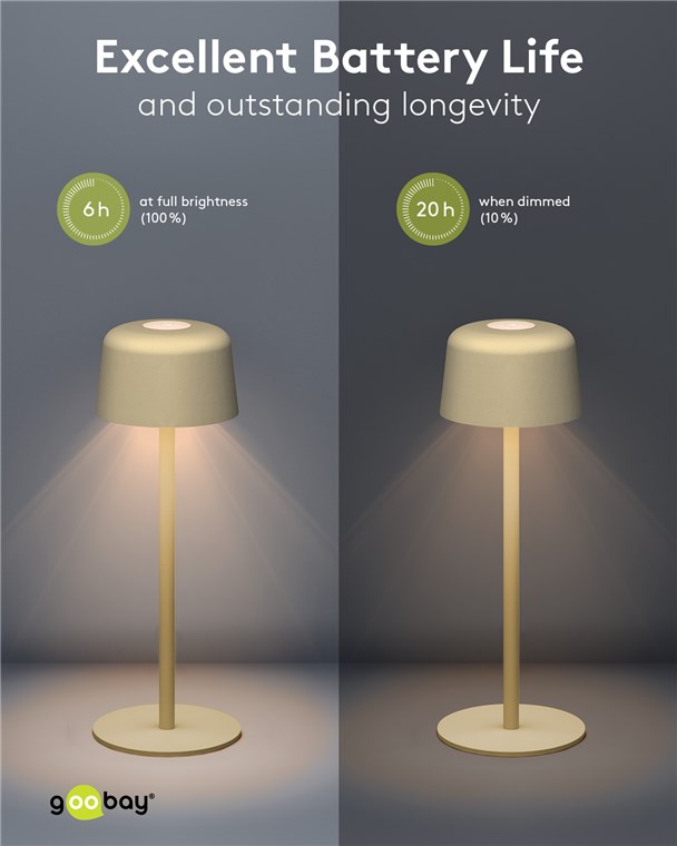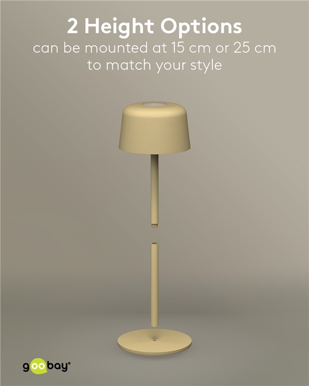Die kleine Tischlampe veredelt mit ihrem reduzierten, skandinavischen Design jedes Wohnzimmer, Schlafzimmer oder Esszimer und setzt auch auf der Gartenparty ein Style-Statement. Gefertigt aus hochwertigem, massivem Metall, steht die innovative Goobay-Leuchte für Qualität und Langlebigkeit.