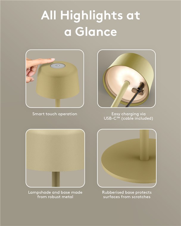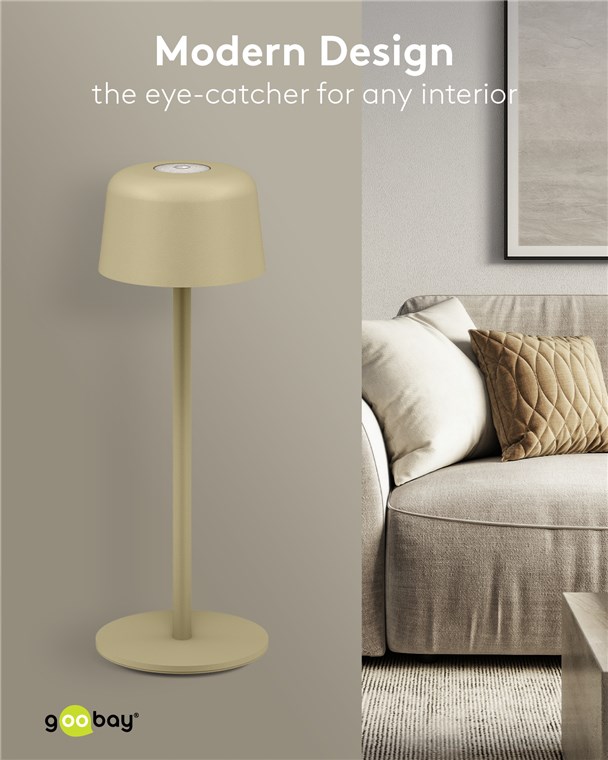 Kabellose LED-Tischleuchte, Größe S, 25 cm, beige