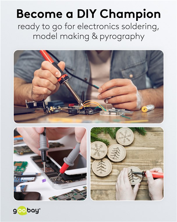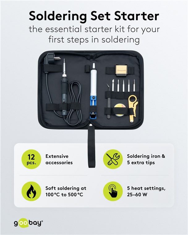 Der Allrounder in deiner Werkstatt und unterwegs: Der Lötkolben assistiert dir mit dem umfangreichem Zubehör tatkräftig bei allen Lötprojekten, von Kabelarbeiten bis zu Elektronik- und Platinenlöten. Auch als Anfänger hast du mit dem Set eine vollständige Erstausstattung für deinen Einstieg ins Löt-Game.
