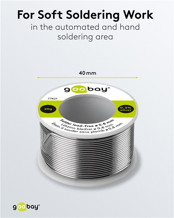 • Flussmittelgefüllter Lötdraht mit einem Durchmesser von 0,8 mm, ideal z. B. für das Löten von Elektronik