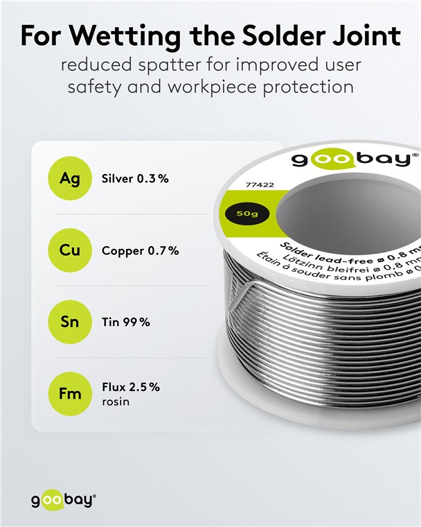- Flussmittelgefüllter Lötdraht mit einem Durchmesser von 0,8 mm, ideal z. B. für das Löten von Elektronik