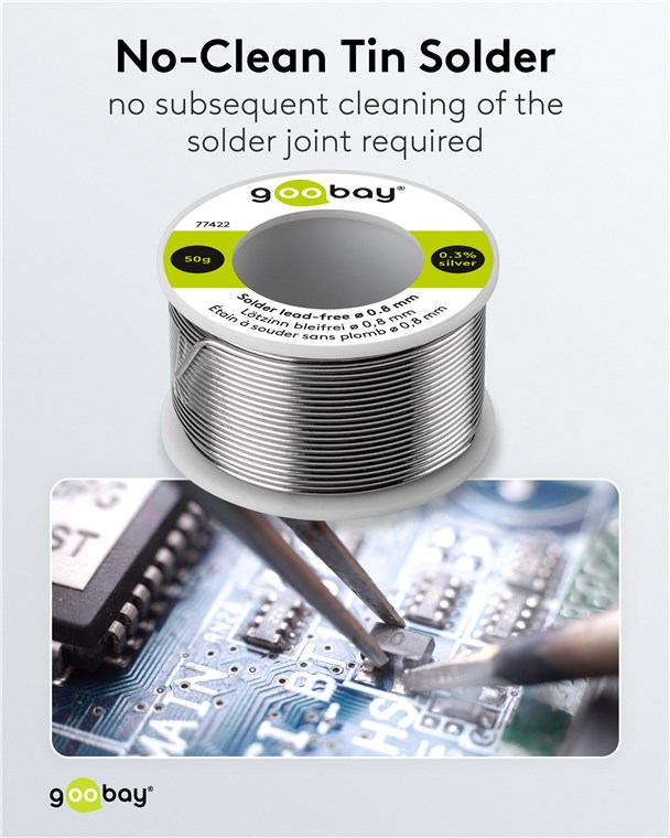 Alles im Flow: Mit dem schmalen Durchmesser ist das Zinn einfach zu dosieren und ideal für Präzisionsarbeiten geeignet, z. B. für Lötarbeiten an elektrischen Bauteilen und Geräten wie Leiterplatten, Platinen, SMDs, DIP, Kabel, Fernseher, Kopfhörer oder Mikrofone. Das eingearbeitete No-Clean-Flussmittel ist besonders komfortabel, da du es nach dem Löten nicht extra von der Lötstelle entfernen musst.