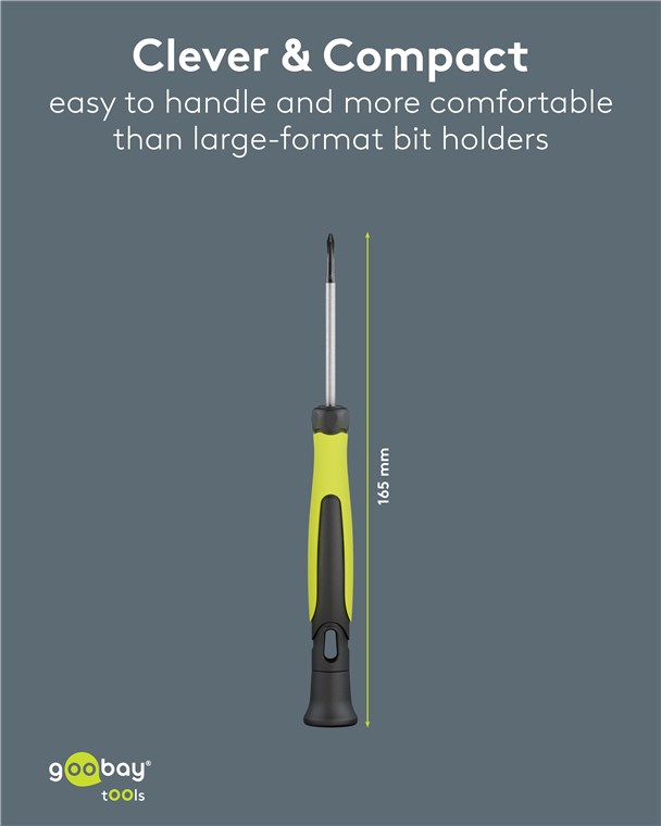 • Durch das praktische, kompakte Format sind die Schraubenzieher einfach in jeder Werkzeugkiste zu verstauen und perfekt für den mobilen Einsatz geeignet