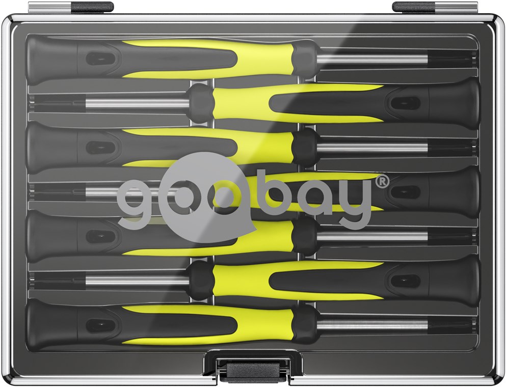 Den Dreh raus: Das Schraubendreher-Set ist der robuste Helfer bei allen feinmechanischen Arbeiten. Durch das schlanke Design und die bewegliche Drehkappe sind die Schraubenzieher deutlich einfacher und effizienter zu handhaben als großformatige Bit-Halter. Die perfekte Ergänzung für jedes Werkzeugset und jeden Werkzeugkoffer.