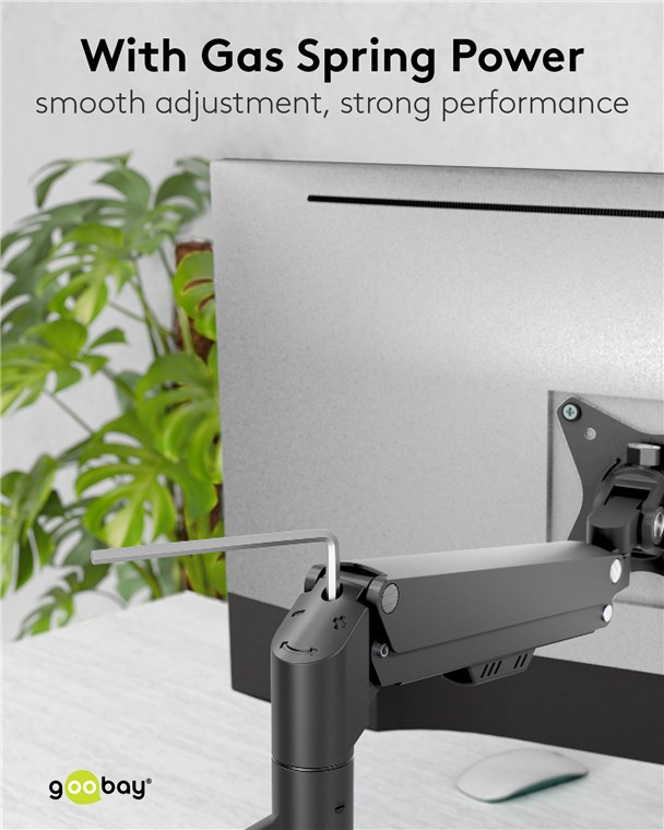 • Durch die Gasdruckfeder mit flexibler Druckstufe lässt sich der Monitor ohne Kraftaufwand jederzeit in die ideale, ergonomische Position bringen - ob beim Arbeiten, Gaming oder Videotelefonat