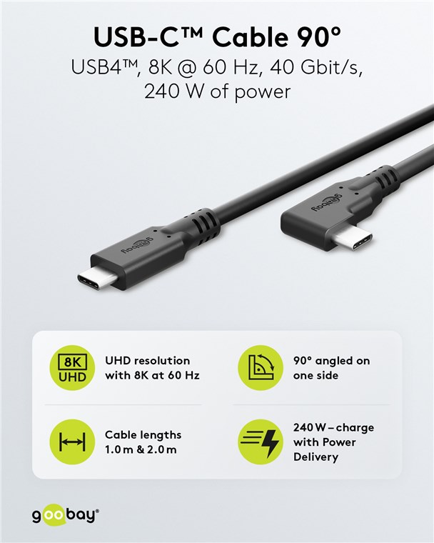 USB-C™-Kabel 90°, USB4™, 1 m, schwarz