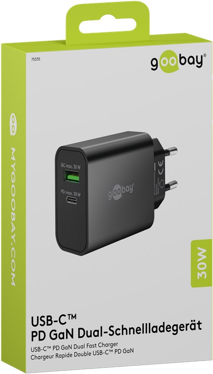 USB-C™ PD GaN Dual-Schnellladegerät (30 W) schwarz