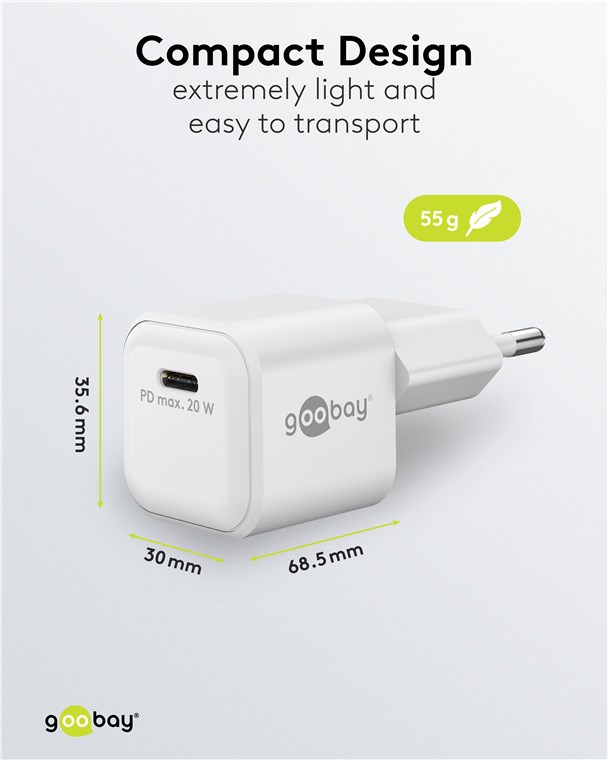 - Die superkompakte und leichte Bauform passt in jede Tasche und macht das USB-C™-Netzteil zum praktischen Begleiter auf Reisen