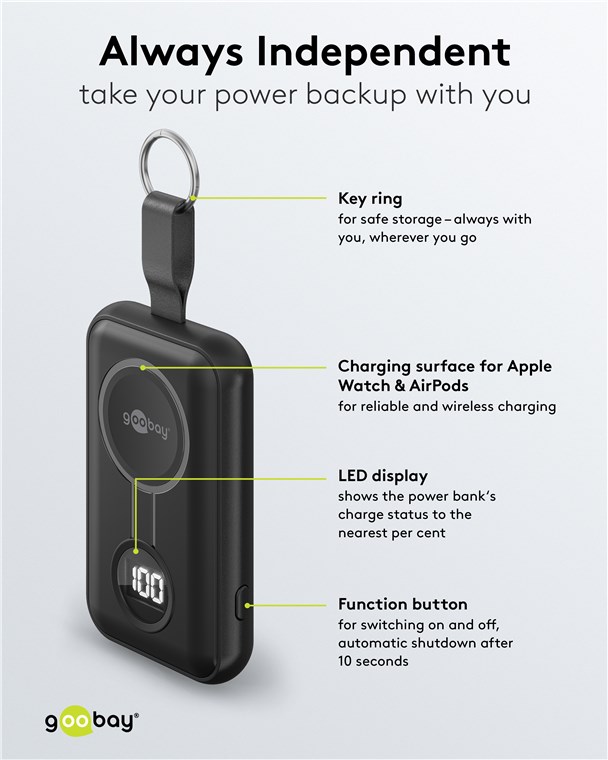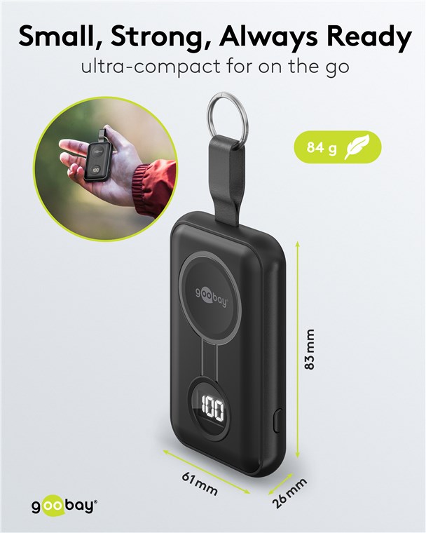 - Unabhängig unterwegs: Die Mini-Powerbank lädt überall dort, wo kein Kabel und keine Steckdose verfügbar sind, z. B. auf dem Weg zur Arbeit, im Zug oder auf Wanderungen in der Natur