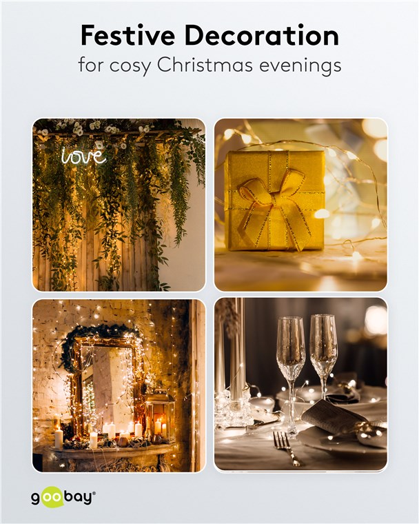 - Atmospheric, wintry christmas lights to embellish walls, windows, doors, glass containers and the Christmas tree.