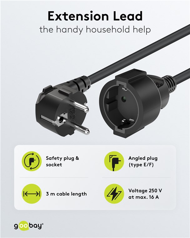 - The extension cord is ideally suited for coupling devices with medium mechanical stress to the socket outlet.