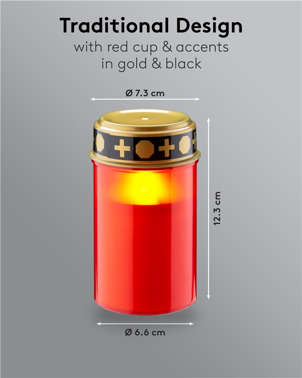 - Unlike real candles, the electric grave light does not require renewing of the candle every day, instead it glows for approx. 30 days per set of batteries