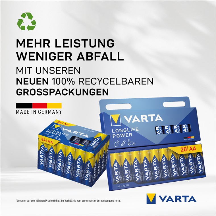 VARTA batteries provide a reliable power supply for small electronic devices. They are characterised not only by a long service life, but also by excellent quality. VARTA offers the optimal energy concept for all daily electronic devices.