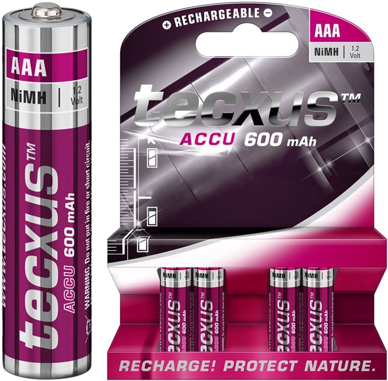- Les piles rechargeables tecxus sont particulièrement respectueuses de l'environnement, car elles sont rechargeables jusqu'à 1000 fois.