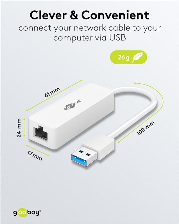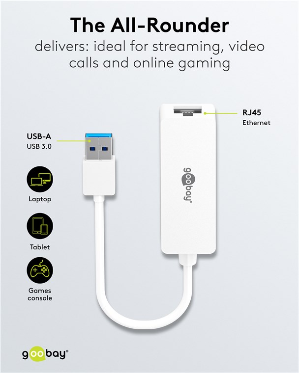 L'Internet filaire est moins perturbé que le WLAN, mais l'ordinateur portable ne dispose pas de son propre port Ethernet ? L'adaptateur LAN-USB pratique relie l'ordinateur en tout confort à un câble réseau existant. Pour les jeux en ligne, les appels vidéo et le streaming avec Gigabit Ethernet – sans lag ni problèmes de connexion. Câblage rapide, streaming sûr !