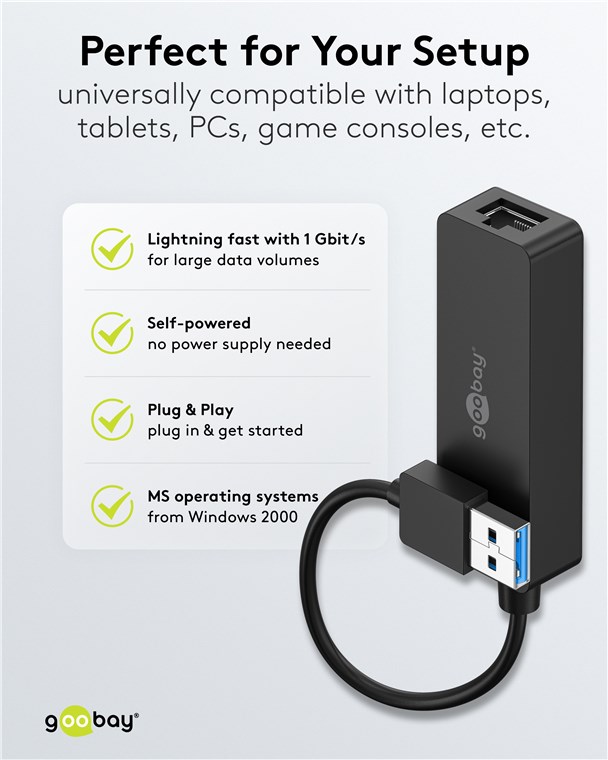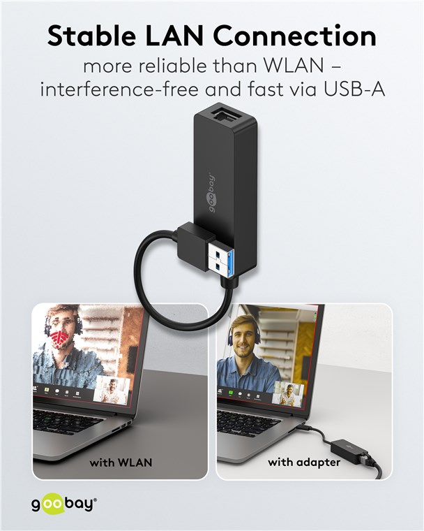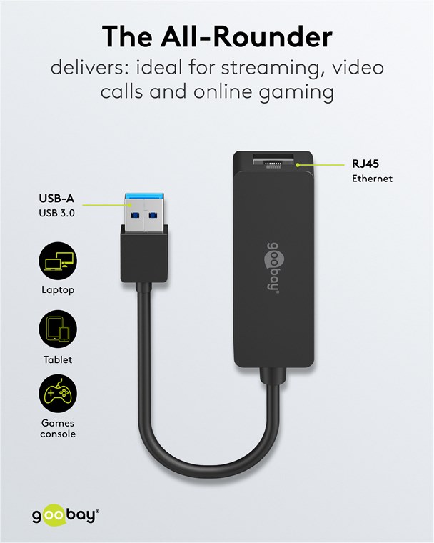 L'Internet filaire est moins perturbé que le WLAN, mais l'ordinateur portable ne dispose pas de son propre port Ethernet ? L'adaptateur LAN-USB pratique relie l'ordinateur en tout confort à un câble réseau existant. Pour les jeux en ligne, les appels vidéo et le streaming avec Gigabit Ethernet – sans lag ni problèmes de connexion. Câblage rapide, streaming sûr !