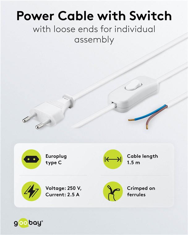 Câble avec Fiche Européenne à Confectionner - avec Interrupteur, 1,5 m, Blanc