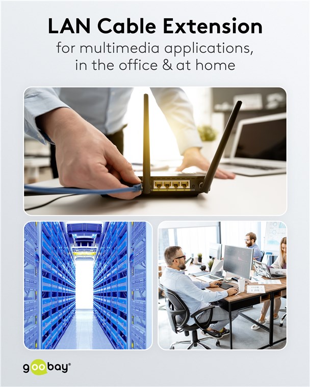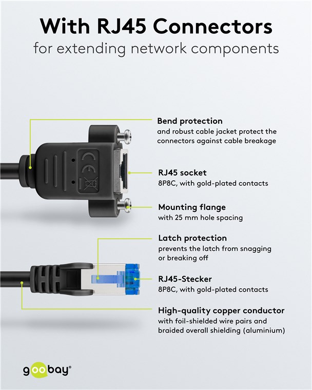 - Rallonge de câble Ethernet à double blindage avec connecteurs RJ45 pour la raccordement de composants réseau