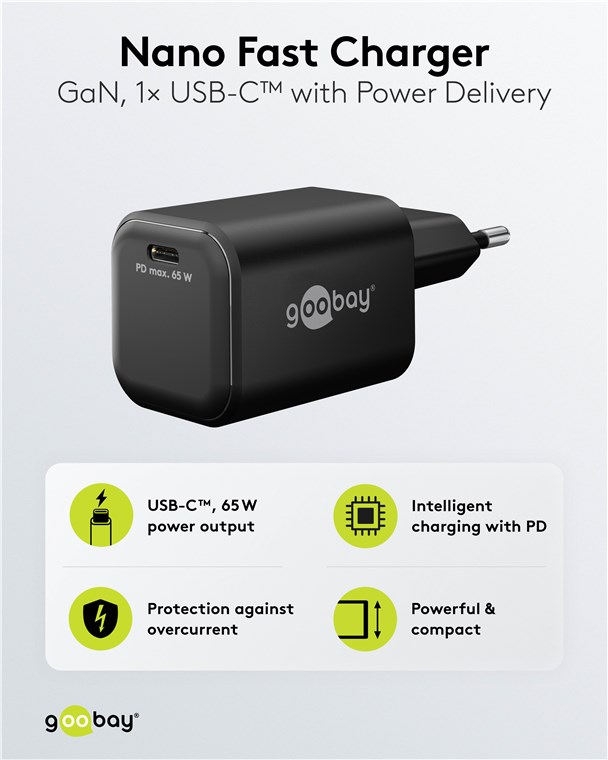 Chargeur Rapide USB-C™ PD GaN Nano (65 W) noir