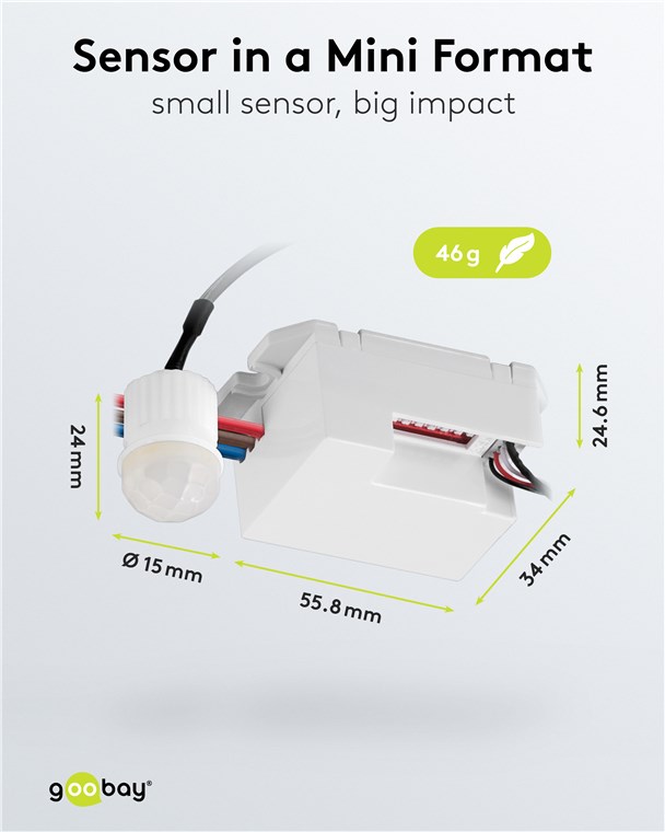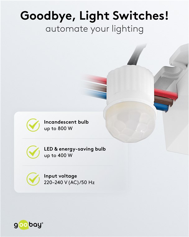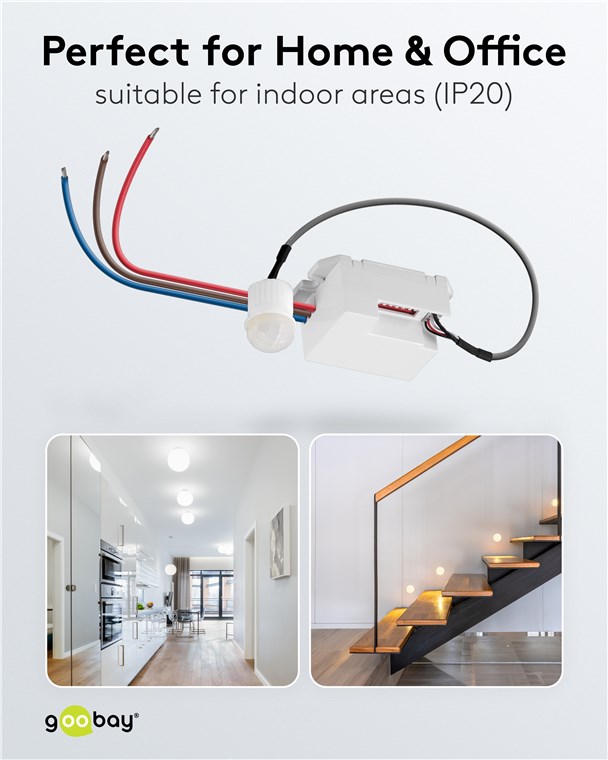 - Remplace l'interrupteur et s'active sans contact : Particulièrement pratique dans les pièces où l'on entre les mains pleines, p. ex. les couloirs ou les buanderies