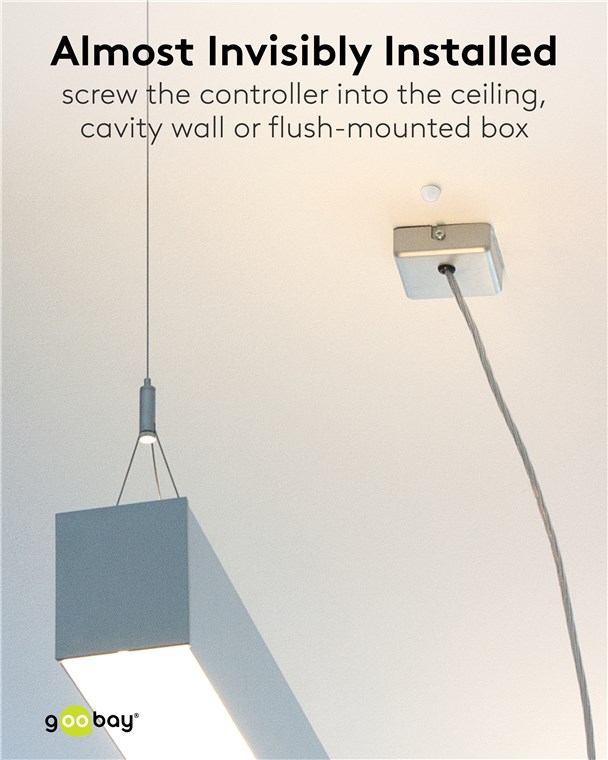 - Avec extrémités de câbles libres et deux œillets de fixation sur l'unité de commande pour un vissage facile dans des boîtiers encastrés, au plafond ou dans des cloisons creuses