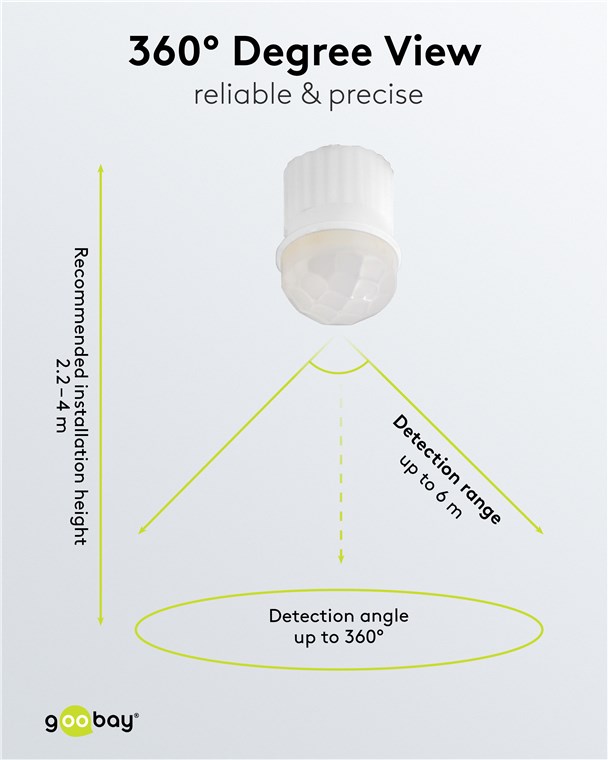 - Avec un angle de détection de 360°, idéal pour un montage encastré dans des plafonds creux, hauteur d'installation : 2,20 m à 4 m