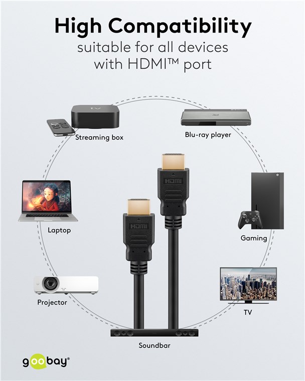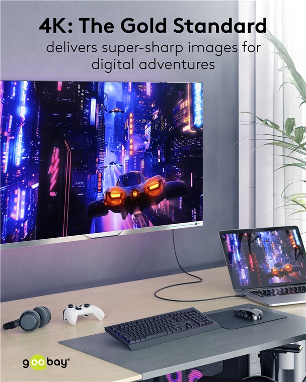 - Idéal pour la transmission audio-vidéo, p. ex. depuis des consoles de jeux (PlayStation 5, Xbox), des services de streaming et des récepteurs (Amazon Fire TV, Apple TV) vers un téléviseur, moniteur ou projecteur