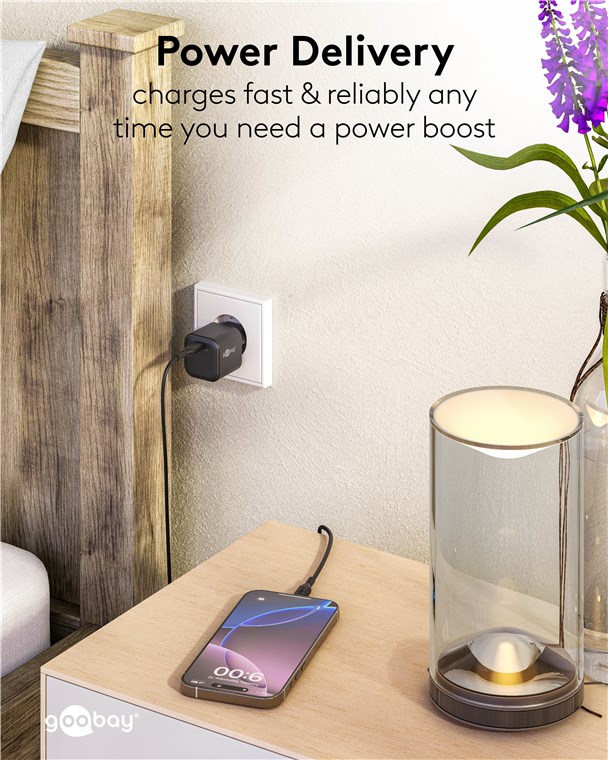 - Con Power Delivery, il caricatore USB ha un metodo di ricarica particolarmente sicuro e dinamico che determina la potenza di uscita ottimale per il dispositivo collegato