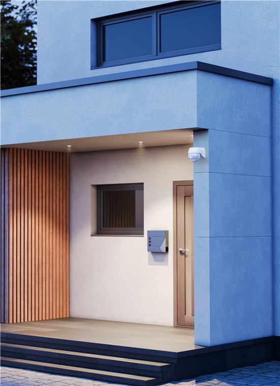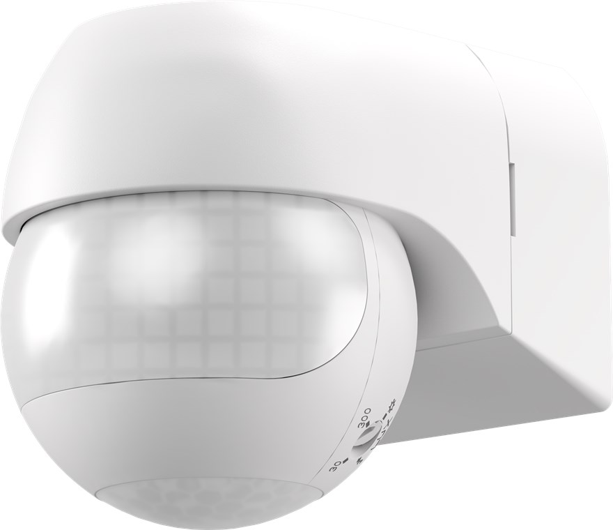 per montaggio a parete, rilevamento a 180°/360°, portata 12 m, per esterni (IP44), compatibile con LED