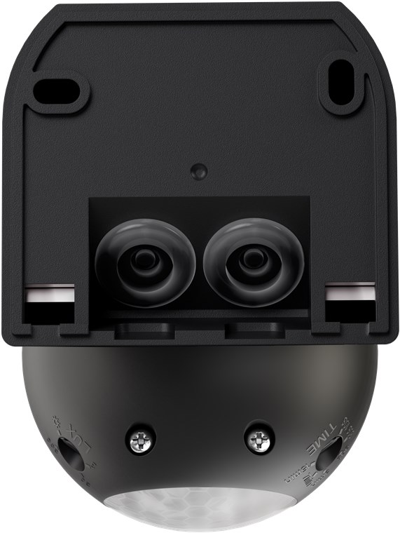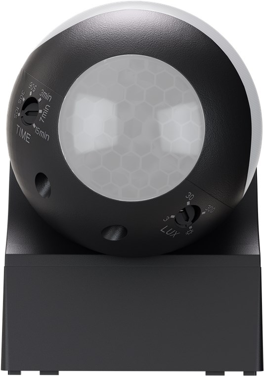 - La sensibilità alla luce (3 lx a 2000 lx) e il ritardo di spegnimento (da 10 s a 15 min) possono essere regolati in modo semplice e continuo tramite la manopola situata nella parte inferiore