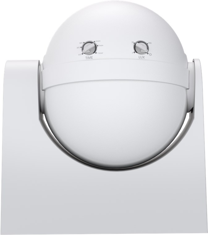 - La sensibilità alla luce (3 lx a 2000 lx) e il ritardo di spegnimento (da 10 s a 15 min) possono essere regolati in modo semplice e continuo tramite la manopola situata nella parte inferiore