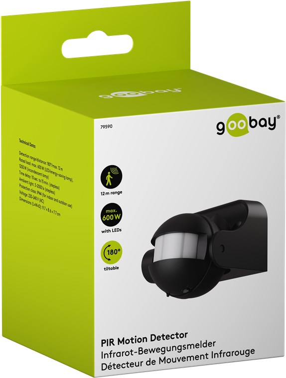 Vento e intemperie? Nessun problema, il rilevatore di movimento con grado di protezione IP44 è perfetto per gli spazi esterni come giardini, tettoie per auto o ingressi di casa. Basta collegarlo all'illuminazione esterna o di passaggio per evitare di inciampare al crepuscolo e al buio. Rilevatori di movimento di Goobay – una sensazione di sicurezza.