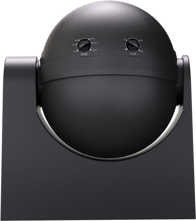 - La sensibilità alla luce (3 lx a 2000 lx) e il ritardo di spegnimento (da 10 s a 15 min) possono essere regolati in modo semplice e continuo tramite la manopola situata nella parte inferiore