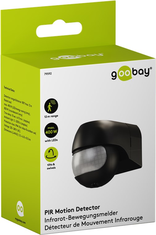 Vento e intemperie? Nessun problema, il rilevatore di movimento con grado di protezione IP44 è perfetto per gli spazi esterni come giardini, tettoie per auto o ingressi di casa. Basta collegarlo all'illuminazione esterna o di passaggio per evitare di inciampare al crepuscolo e al buio. Rilevatori di movimento di Goobay – una sensazione di sicurezza.