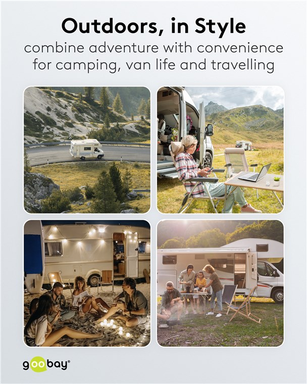 - Podstawowe akcesorium kempingowe: Adapter CEE do podłączania kamperów, przyczep kempingowych lub przyczep kempingowych do sieci elektrycznej na kempingu