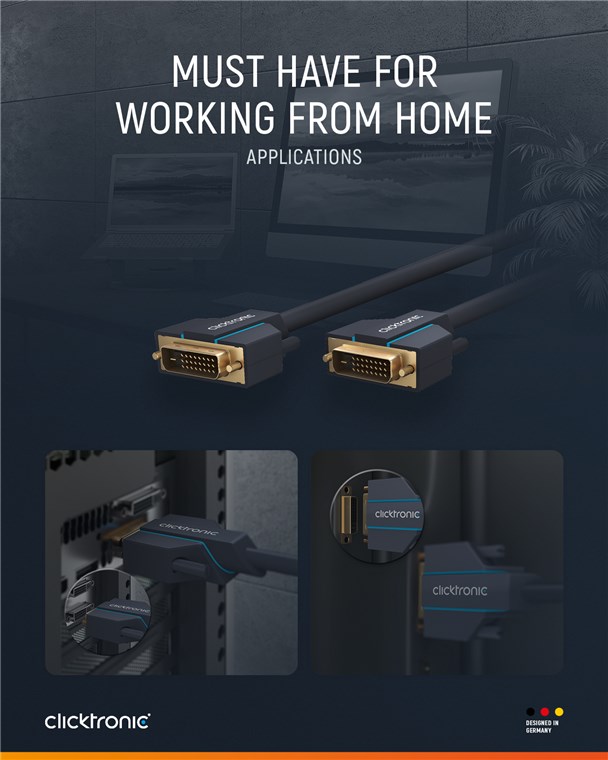 Clicktronic przywiązuje dużą wagę do trwałości i stabilności. Nasza obietnica jakości: 10 lat gwarancji na nasze kable DVI. Własna konstrukcja naszych kabli ekranowych sprawia, że są one niezwykle wytrzymałe. Trzyczęściowa konstrukcja złącza wykonana z PVC i ABS kompensuje szarpnięcia kabla, dzięki czemu jest ono idealnie zabezpieczone przed zerwaniem. Wysokiej jakości pozłacane styki i przewodniki z czystej miedzi przesyłają cyfrowy sygnał wideo w maksymalnej jakości, zapewniając doskonałe wrażenia podczas oglądania filmów i grania. Kabel DVI firmy Clicktronic umożliwia uzyskanie ostrego obrazu i charakteryzuje się bardzo dużą szybkością transmisji.