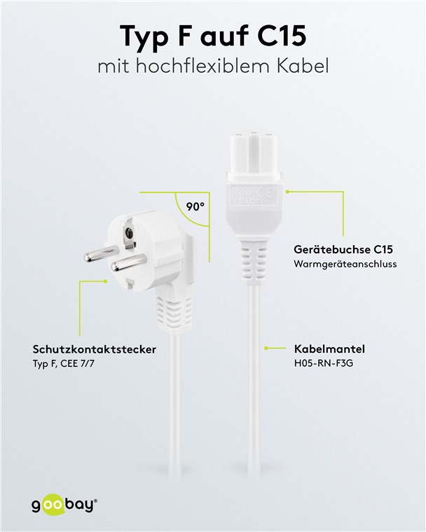 wtyk ze stykiem ochronnym (typ E/F, CEE 7/7) 90° > Gniazdo urządzenia C15