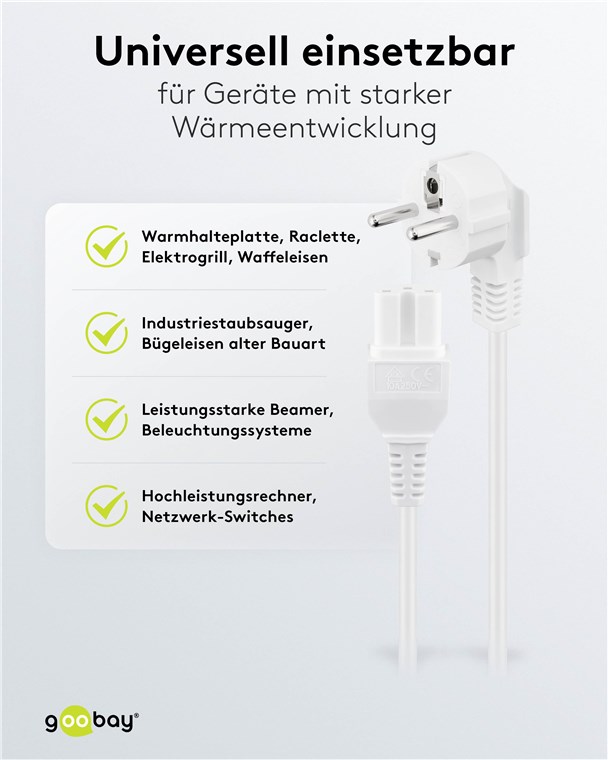 - nadaje się np. do płyt grzejnych, grilli stołowych, żelazek, gofrownic i innych urządzeń z przyłączem do urządzeń gorących (C16)
