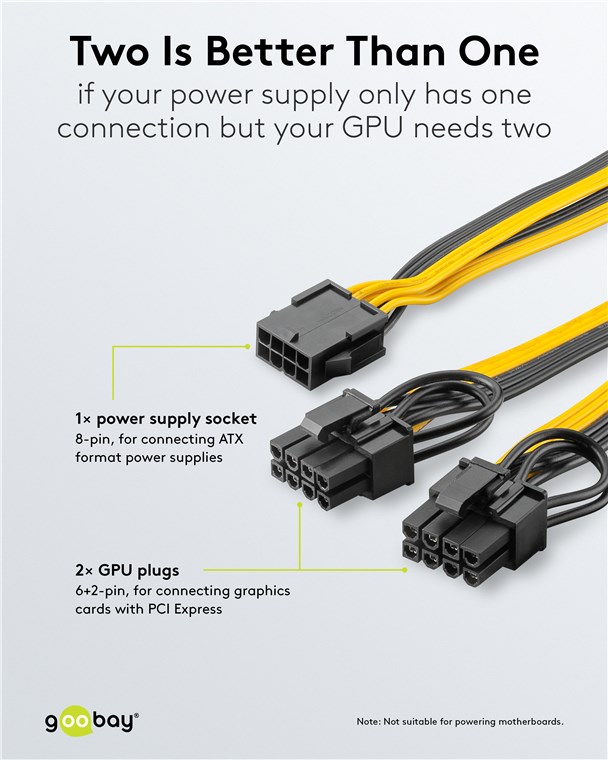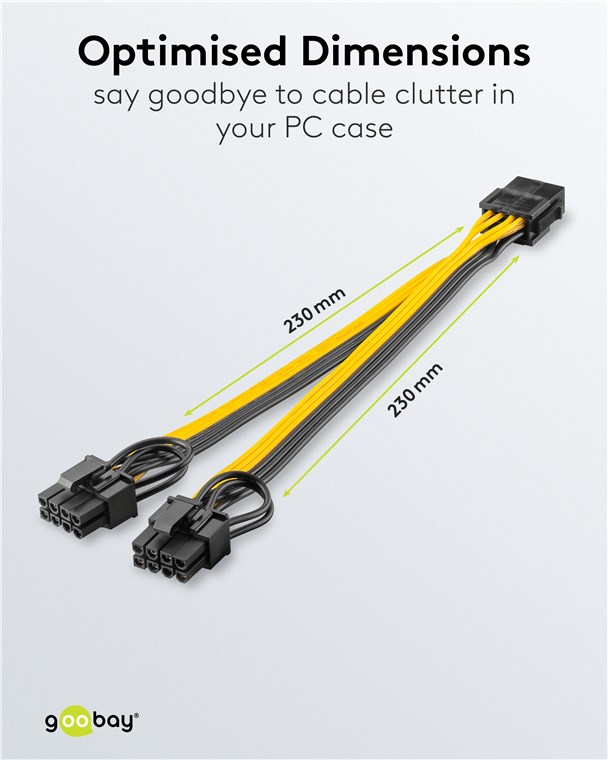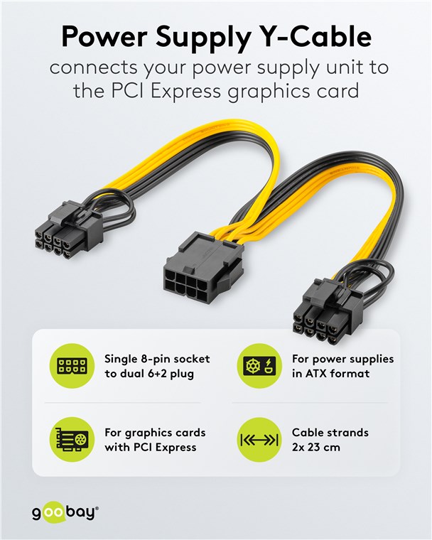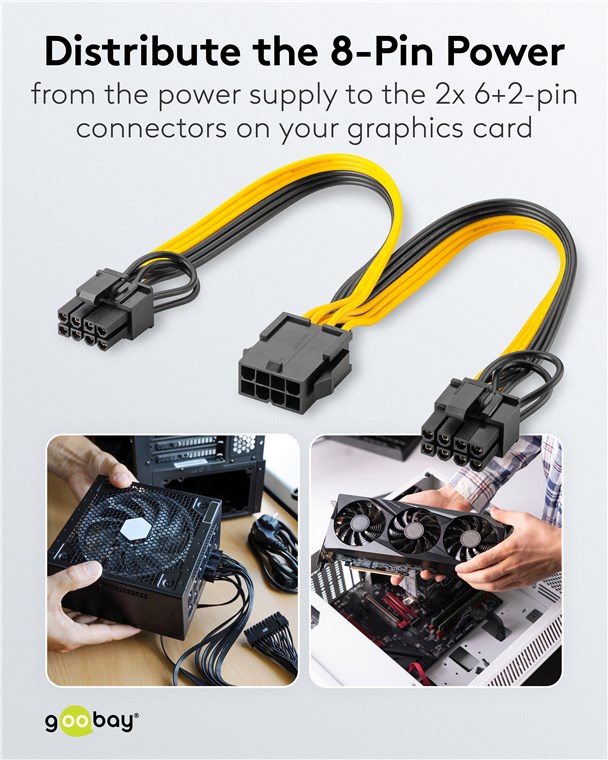 - Kabel zasilający do podłączenia modularnych zasilaczy PC do podwójnych 6-pinowych i 8-pinowych kart graficznych