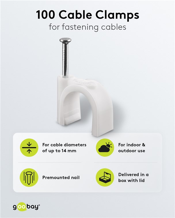 Wysokiej jakości stabilizowane tworzywo PE i stalowe gwoździe ocynkowane. Możesz użyć klipsów kablowych z gwoździem w pomieszczeniach i na zewnątrz, mają dobrą izolację, odporność na korozję, odporność na starzenie.