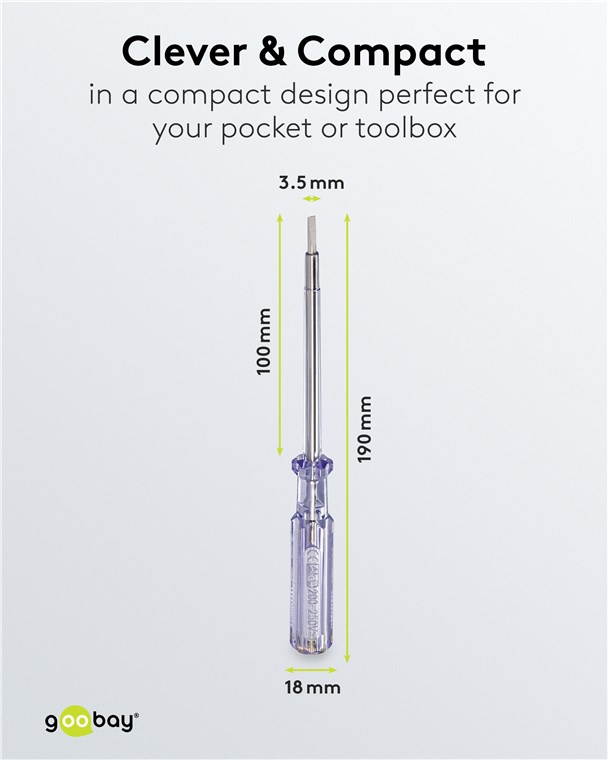 - Wymiary testera fazy, szerokość ostrza x długość trzonu: 3,5 mm x 100 mm